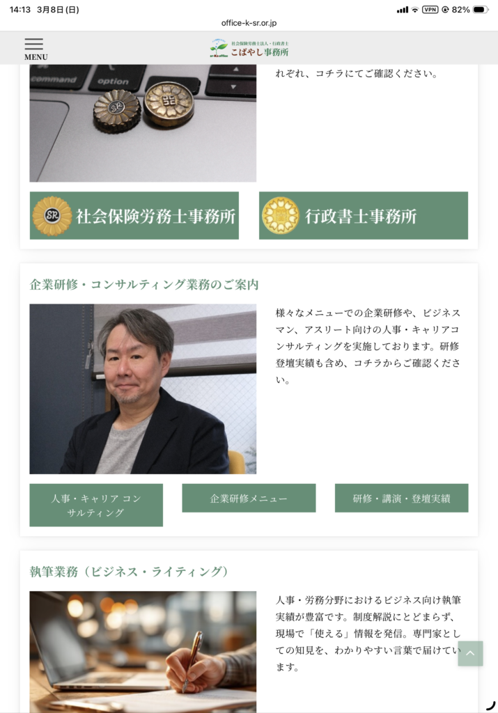 ホームページを大幅にリニューアルしました当事務所のホームページを大幅にリニューアルいたしました。今般も、SiSoLa Designの本郷さまに丁寧かつスタイリッシュに仕上げていただきました。写真の一部…