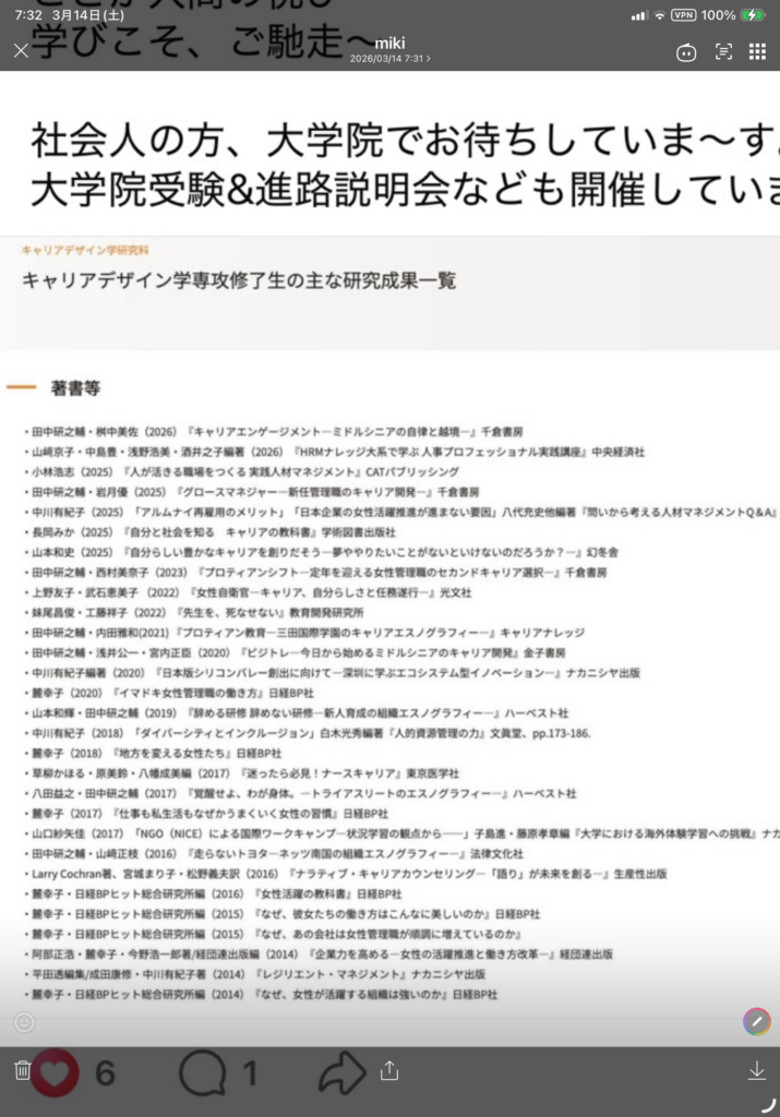 法政大学院の「修了生の研究成果等一覧」に掲載していただきました2021年3月に修了いたしました、法政大学 大学院 キャリアデザイン学研究科のホームページに、「修了生の研究成果等一覧」として、拙著に関しても ご掲載を賜りまし…