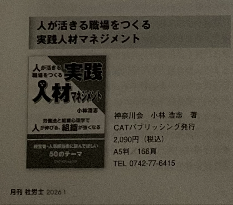 『月刊 社労士』に拙著が紹介されました社会保険労務士の、いわば業界誌である『月刊 社労士』に拙著『人が活きる職場をつくる 実践人材マネジメント』の紹介文を掲載していただきました。「日本労務学会」、「…