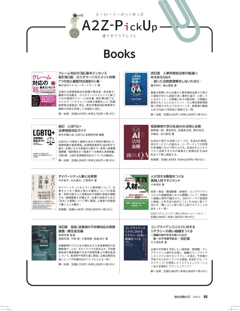 新たな書評を載せていただきました拙著につきまして、また新たに書評を掲載していただきました。第一法規さまの『会社法務A2Z』3月号にの「Pick Up-Books」として、名だたる書籍と共に取り…