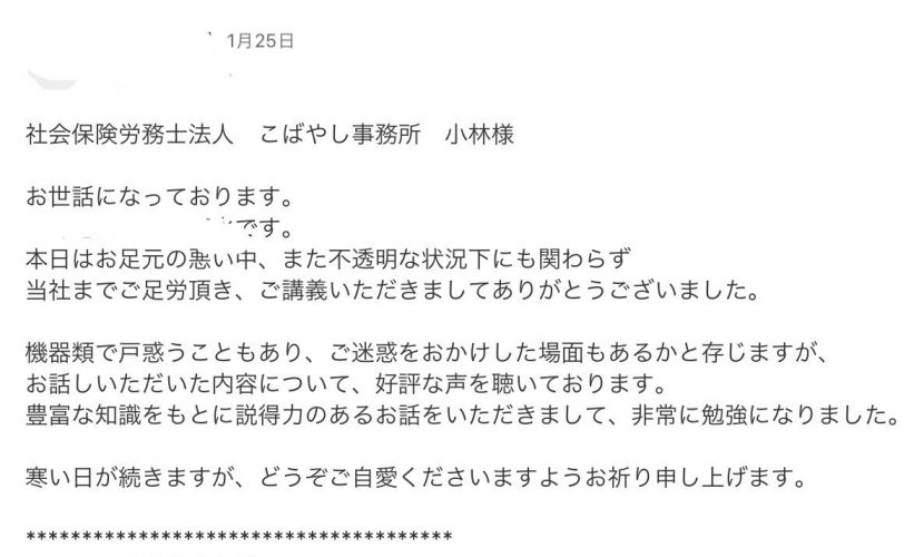 人事部の方からも礼状を拝承し、とても光栄に存じます。
