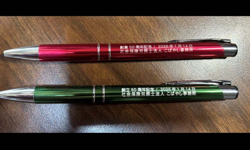 創業50周年を記念し、顧問先さまへ配布するボールペンを作製していただきました。ささやかですが、ご笑納いただけますと幸いです。