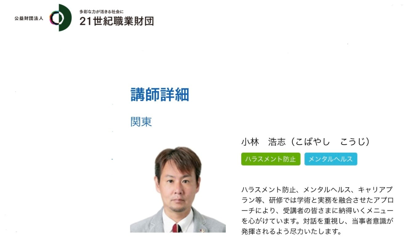 - 公益財団法人21世紀職業財団 ハラスメント防止研修客員講師