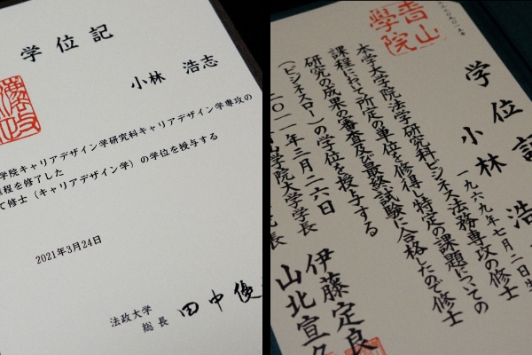 - 法政大学 大学院 キャリアデザイン学研究科 修了(キャリアデザイン学修士)修士論文『職業野球選手のキャリアトランジション時の対処に関する研究』