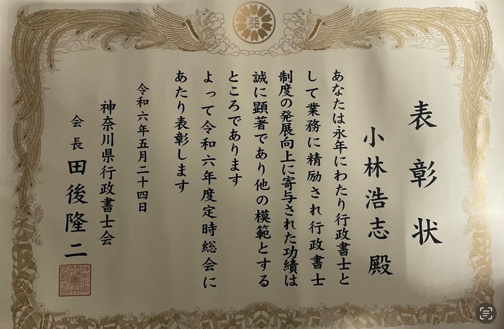 行政書士 永年勤続表彰