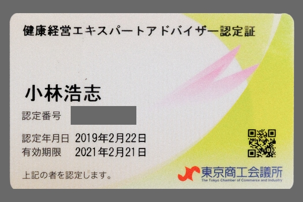 代表社員の小林浩志は、「健康経営エキスパートアドバイザー」としての健康経営実現に向けたプロセス作り、「衛生工学衛生管理者」としての健康管理への法的な実務対応、「THP(中央労働災害防止協会)認定 心理相談員」として、御社に合った産業医の選び方や、ストレスチェック制度の活用方法などをお手伝いさせていただきます。
