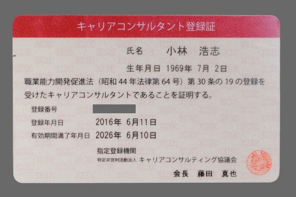 小林浩志は、国家資格キャリア・コンサルタントを保有しており、10年以上の活動歴がございます。厚生労働省からの委託事業で中高年向け・コンサルティング業務なども受託しています。