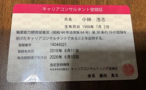 小林浩志は、国家資格キャリア・コンサルタントを保有しており、10年以上の活動歴がございます。厚生労働省からの中高年向け・コンサルティング業務も委託しています。